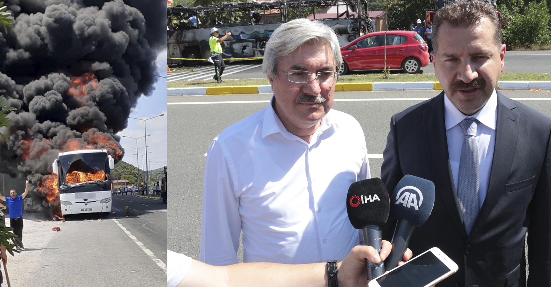 Balıkesir’e 30 kilometre uzaklıkta bulunan Gökçeyazı Mahallesi’nde meydana gelen yolcu otobüsü yangınının kahve makinesinden çıktığı öne sürüldü. Balıkesir Büyükşehir Belediye Başkanı Yücel Yılmaz, yanan otobüsün yanında açıklama yaptı.